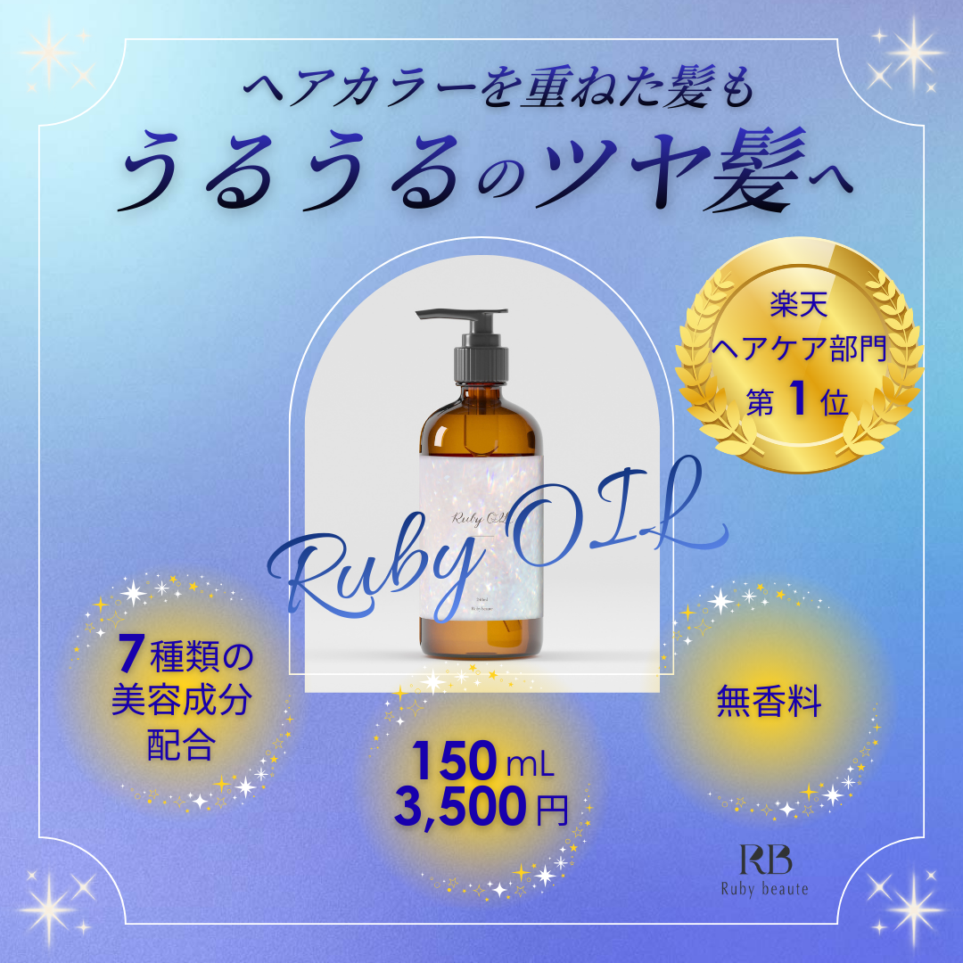 HerTech社 架空案件バナー作成 taeko gamou Webデザイナー 兼 臨床検査技師 OVERVIEW 新作ヘアオイルの商品LP誘導バナーの作成 YEAR 2025 同じテーマで配色を変えてみました。