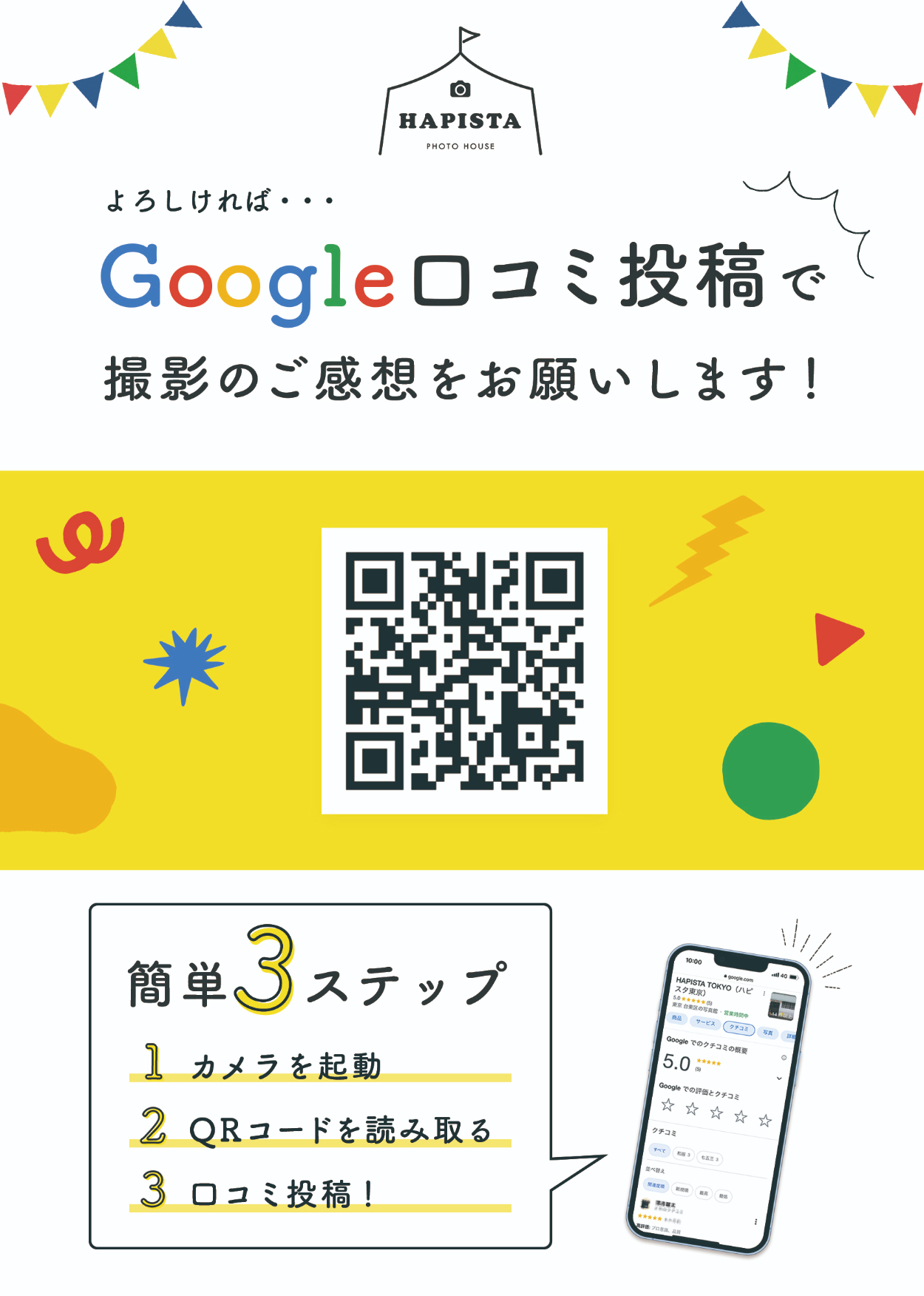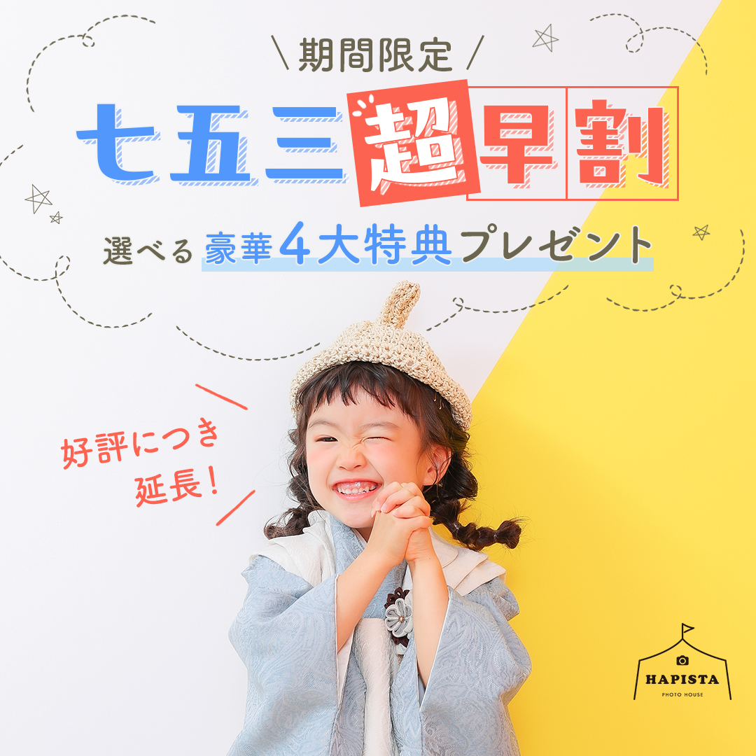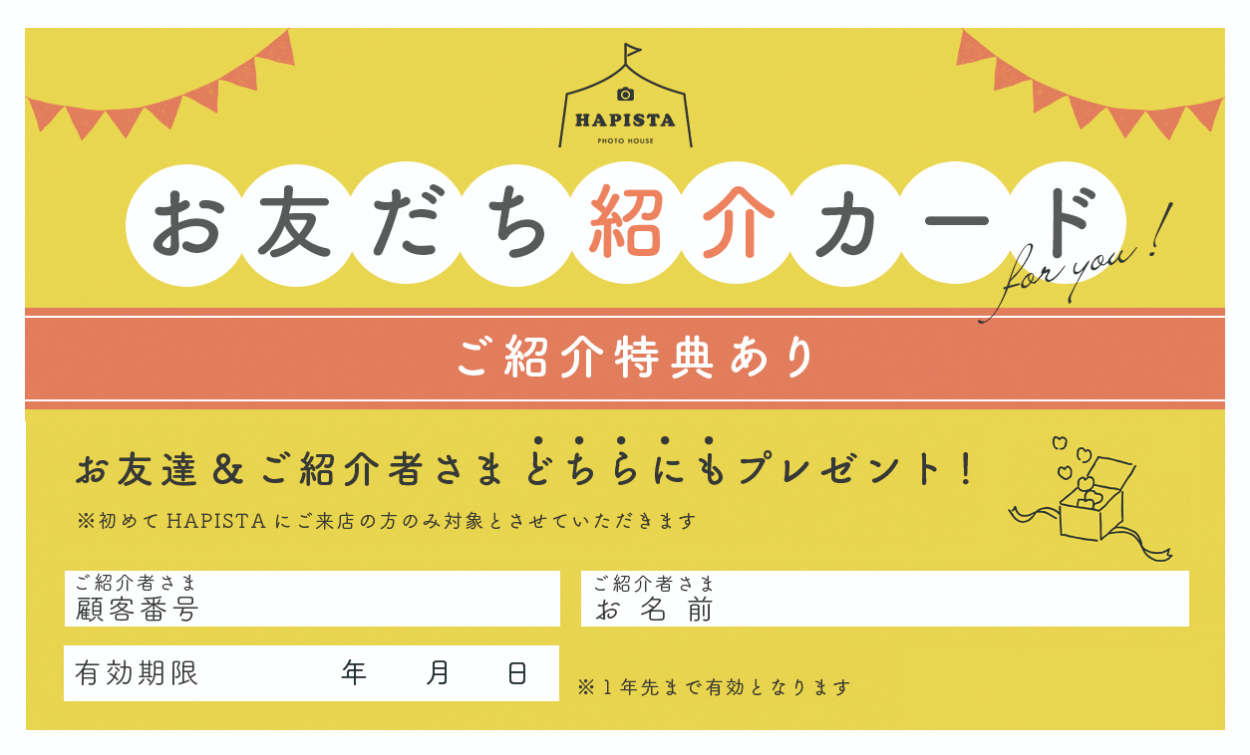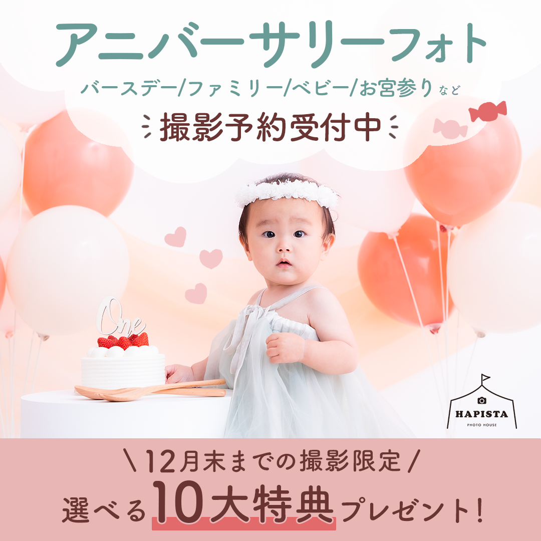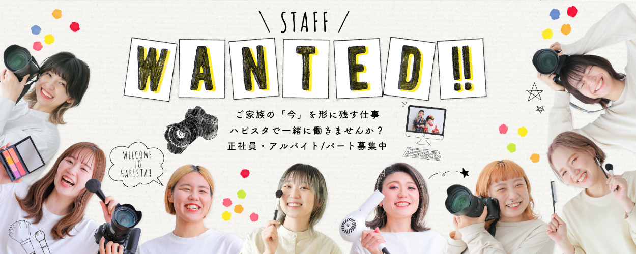 トンマナ ▶︎ HAPISTAのフォトプラン提案バナーにはキャッチコピーのようなものはあまり使用せず、わかりやすいメッセージと写真のインパクトで「とにかく押していただく」を目的に制作。その写真に合ったフォントや写真を邪魔しないバランスのいいイラストの配置を期待。HAPISTAの世界観が反映され、実際にスタジオに来店したときとギャップのないバナーにする。