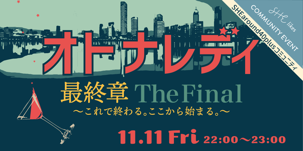 Shelikes around40plusコミュニティ『オトナレディ最終章The Final〜これで終わる。ここから始まる。〜』イベント告知バナー