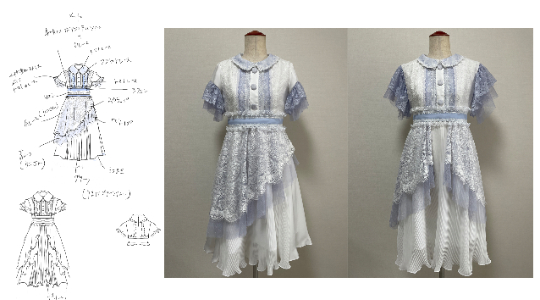 ・今までの衣装も全てロング丈のスカートの衣装が多かったので変化をつけたかったのと、清楚感を残しつつ夏らしく肌みせをするためにスカートの前丈は少し短めに、後ろは長めにデザイン