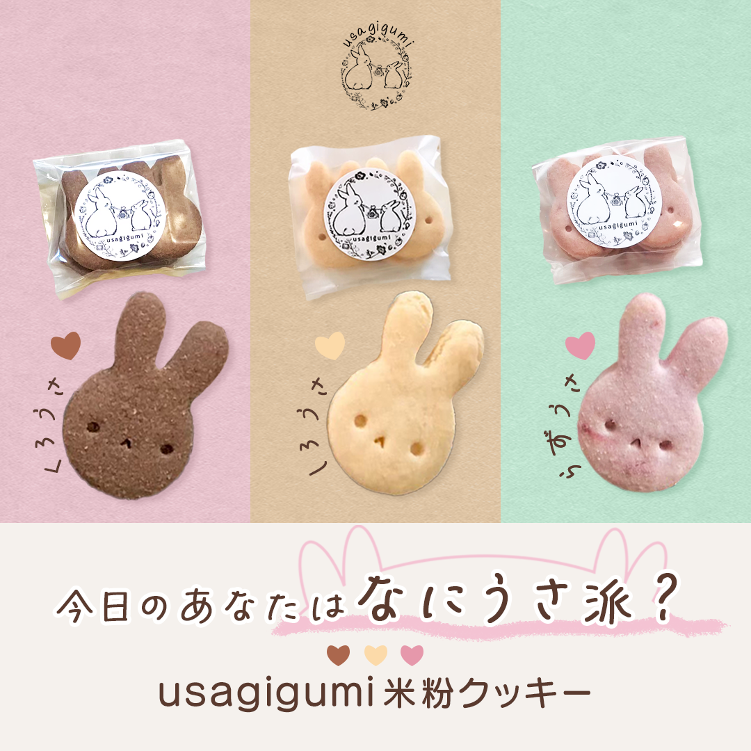 - レギュラーメニュー紹介についての投稿をしたことがないので、メインメニューであるうさぎの米粉クッキーのラインナップの周知。usagigumi=この商品だと結びつけてほしい。