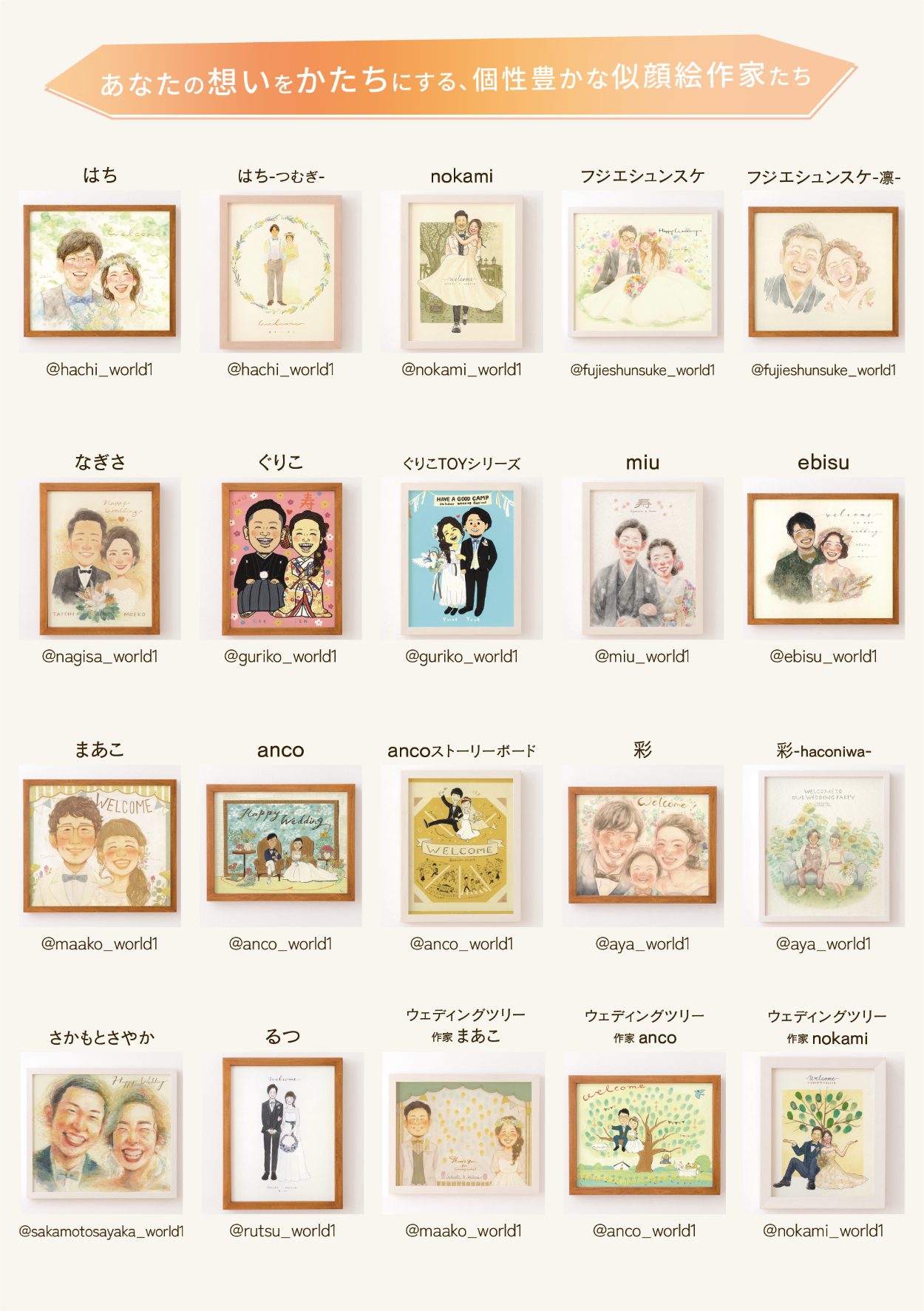 一つひとつ丁寧に手で描いている似顔絵のブランドであることから、作家の思いと絵に込められたあたたかみをオレンジとピンクのグラデーションで表現しました。