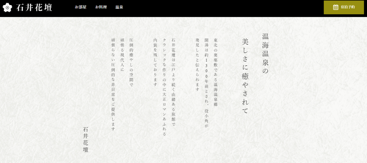 Adobe XDでのデザインカンプからサイトをコーディングしました。 縦書きやアニメーションなどを使用して、見やすいサイトを意識して作成しています。