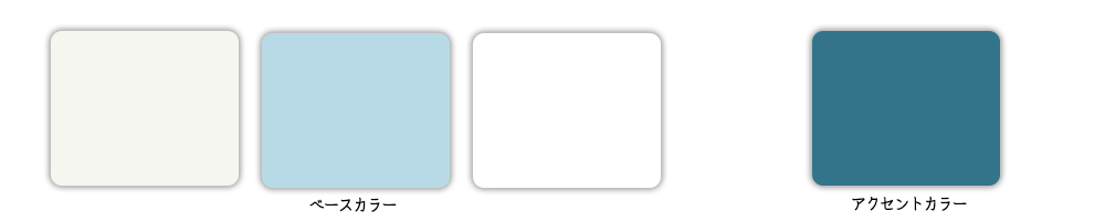 指定のベージュと水色をベースカラーに、アクセントカラーには水色の暗いトーンを選びました。背景色は清潔感のある白をベースにしました。