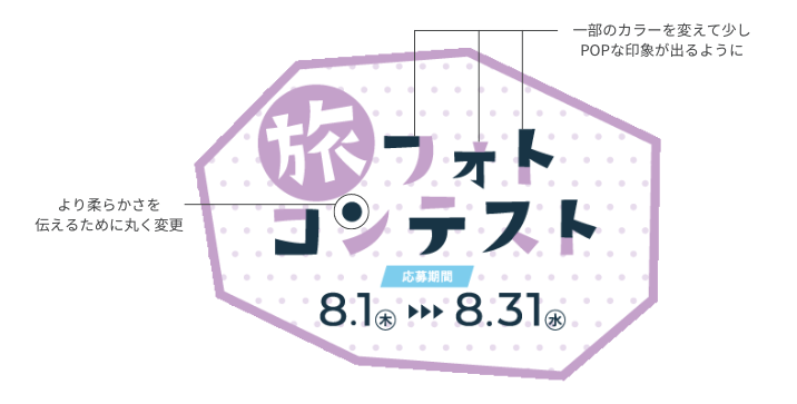 ・楽しげで参加しやすいような雰囲気を、「旅フォトコンテスト」の文字に少し遊びを加えました。
