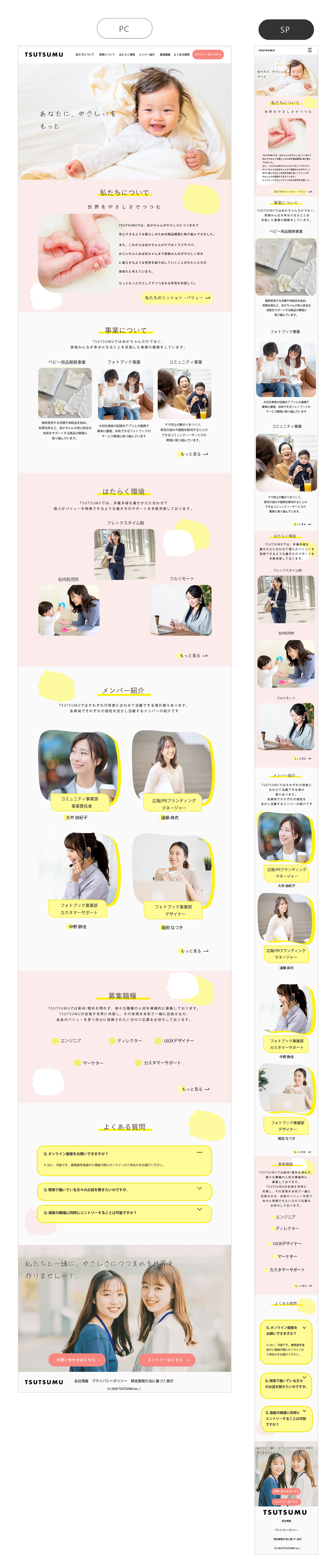 SHElikes MULTI CREATOR COURSEの課題でTSUTSUMU株式会社の採用サイト制作に取組みました。クライアントからの要件書をもとに、ペルソナ・ユーザーストーリー・要件定義・デザイン・コーディング・サーバーアップまで実施しました。