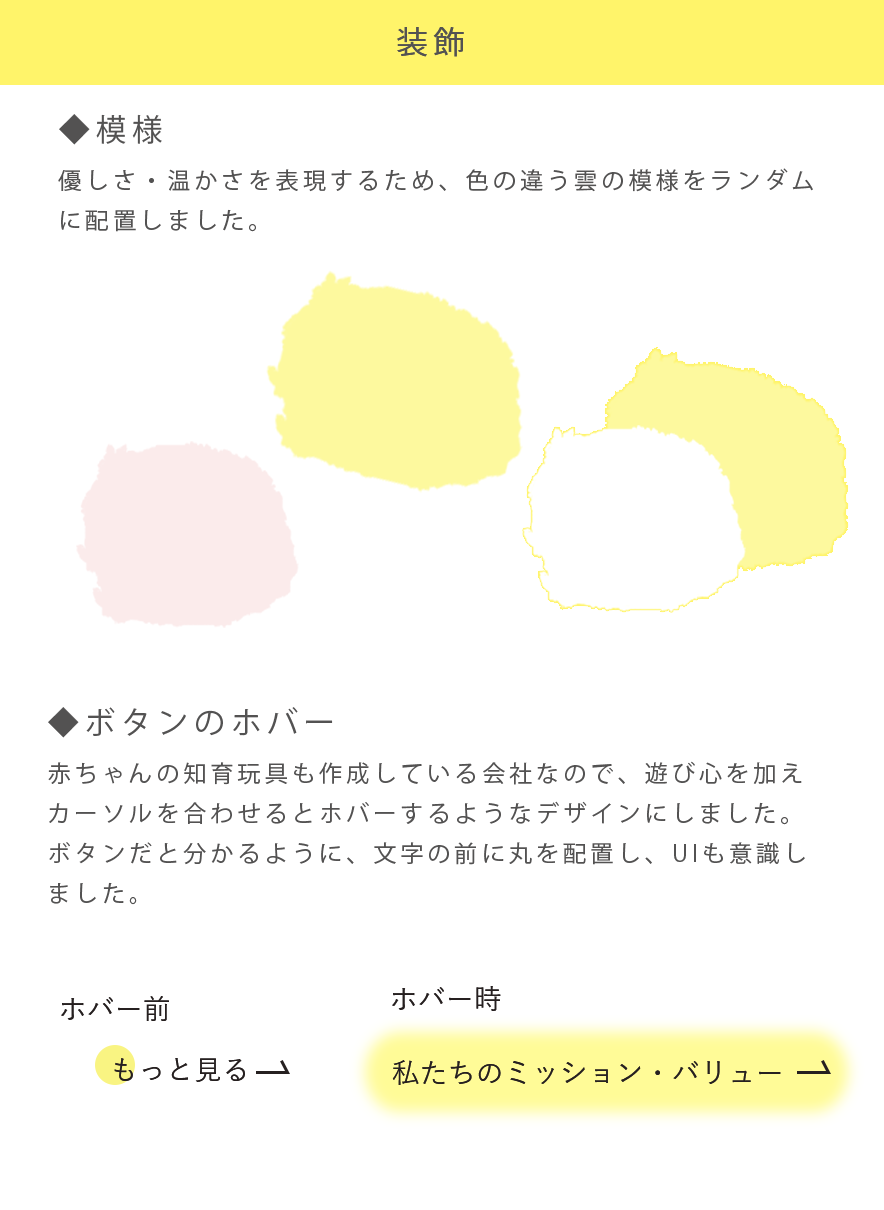 デザインカンプを制作するときに、ここはどうしたらコーディングがスムーズにできるだろうか?と考えながら制作を行いました。結果的に余白が合わず、装飾も付けたい位置からずれてしまったので、今後はコーディングをより意識し、スムーズに実装までできるようスキルを磨きます。