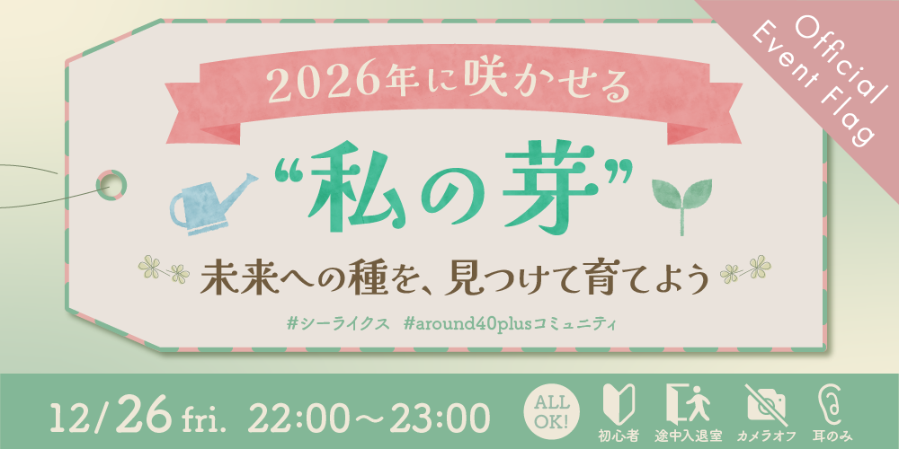 - 「自分の伸ばしたいことを書き出し言語化する」というイベント内のワークにちなみ芽や種に付けるラベルのイメージでデザインしました。また「2026年に咲かせる“私の芽”」というコンセプトを視覚的に伝えるため、芽やじょうろのモチーフを取り入れ、コピーとビジュアルを連動させたストーリー性のあるデザインに仕上げました。
