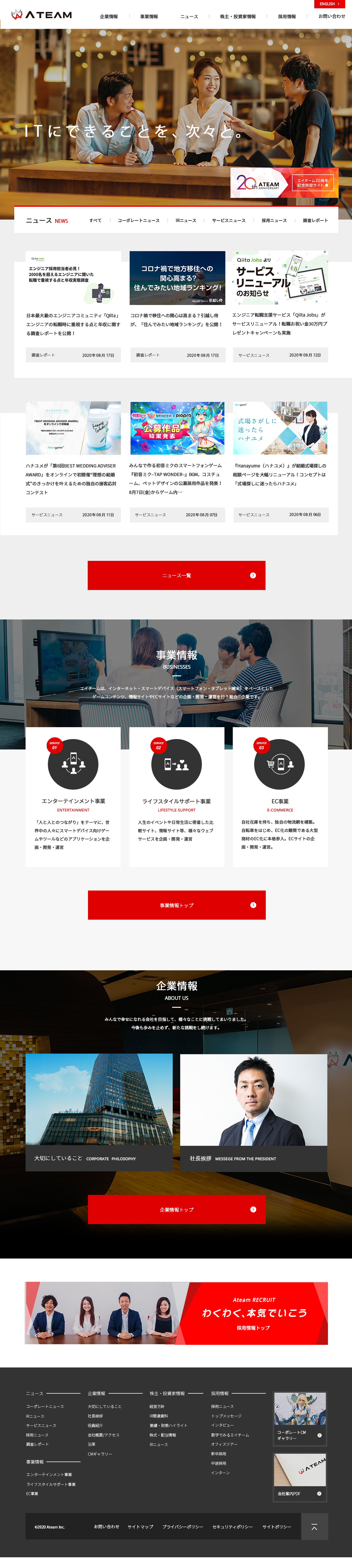 ベースカラー、メインカラー、アクセントカラーのバランスがよい。企業のキーカラーである’赤’をボタンなどに効果的に使用している。