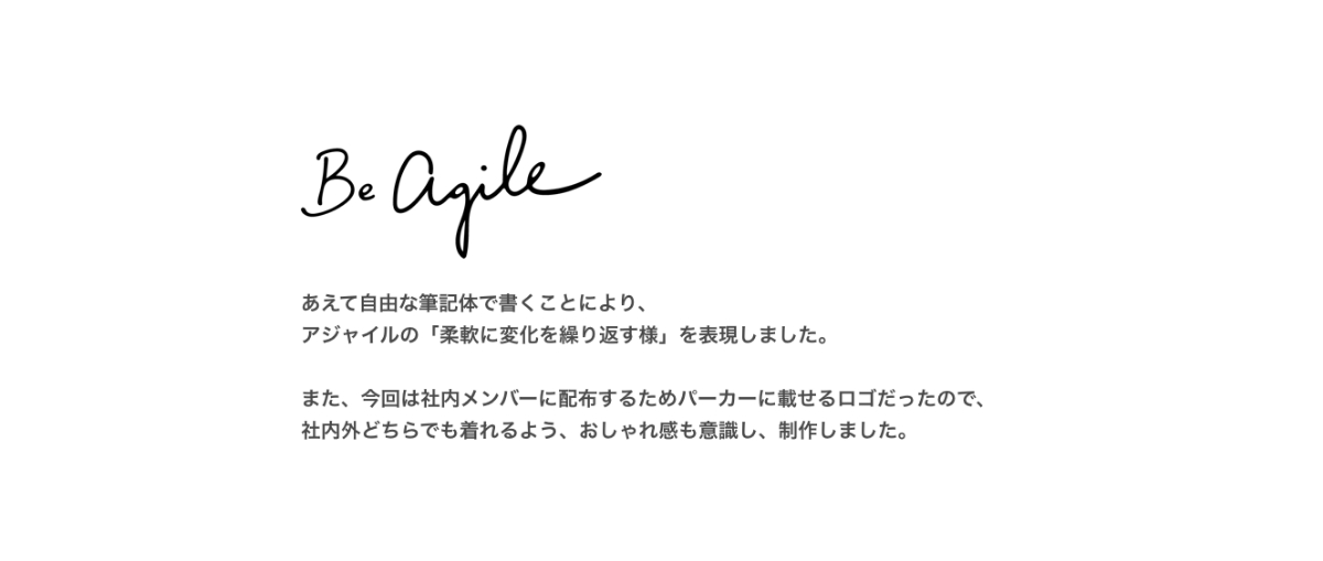株式会社クラウドワークスの2019年の全社スローガン「Be Agile」の、パーカー制作用のロゴを制作しました。