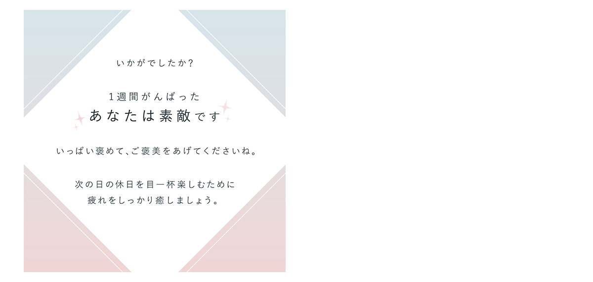 - がんばった自分に金曜日の夜くらいはご褒美をあげていいんだよということ