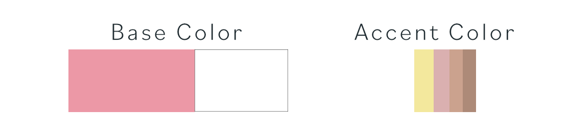 デザインガイドに則りつつ、ターゲットの女性向けかつ商品イメージに合うピンク系の色味をベースカラーに、アクセントカラーとして黄色を使用しました。