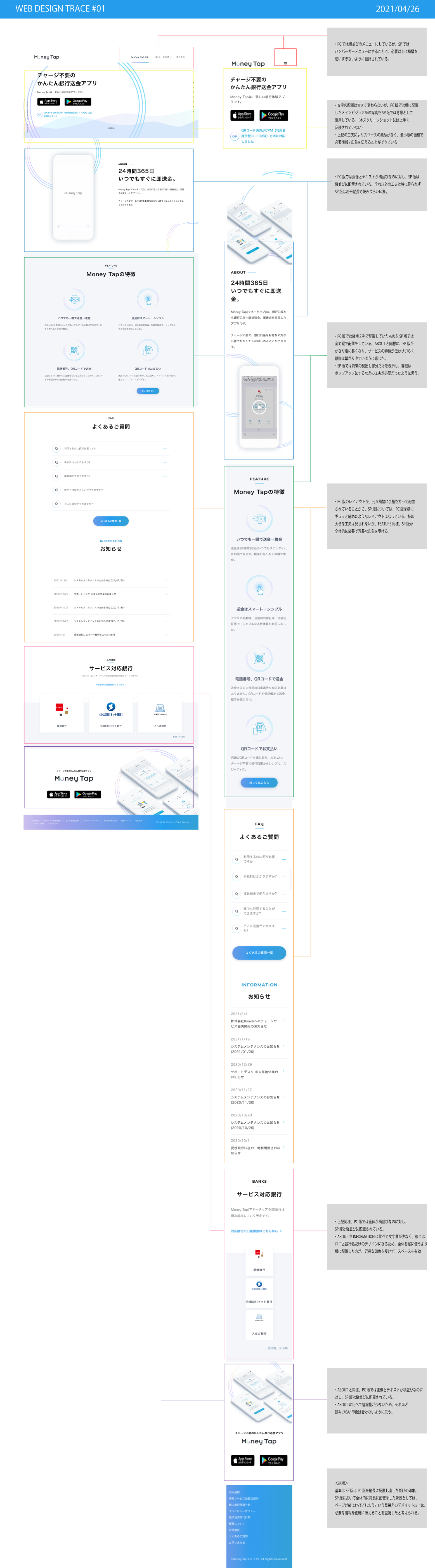 Money Tap(https://moneytap.jp/)LPのトレース、スタイルガイド作成、PCとSPの比較分析を行いました。