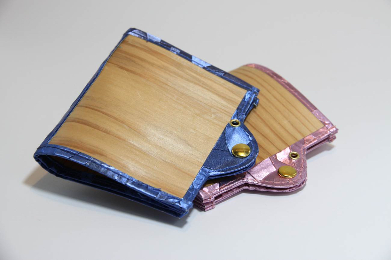 特殊な加工を施し薄くスライスした天然杉シートの裏に麻生地を貼り付けることで、柔軟性や強度を持たせています。もともとウィルス不活性効果の高い杉を素材に菌を寄せ付けない塗装を施しているので、ウェットティッシュなどで簡単に除菌メンテナンスが可能。