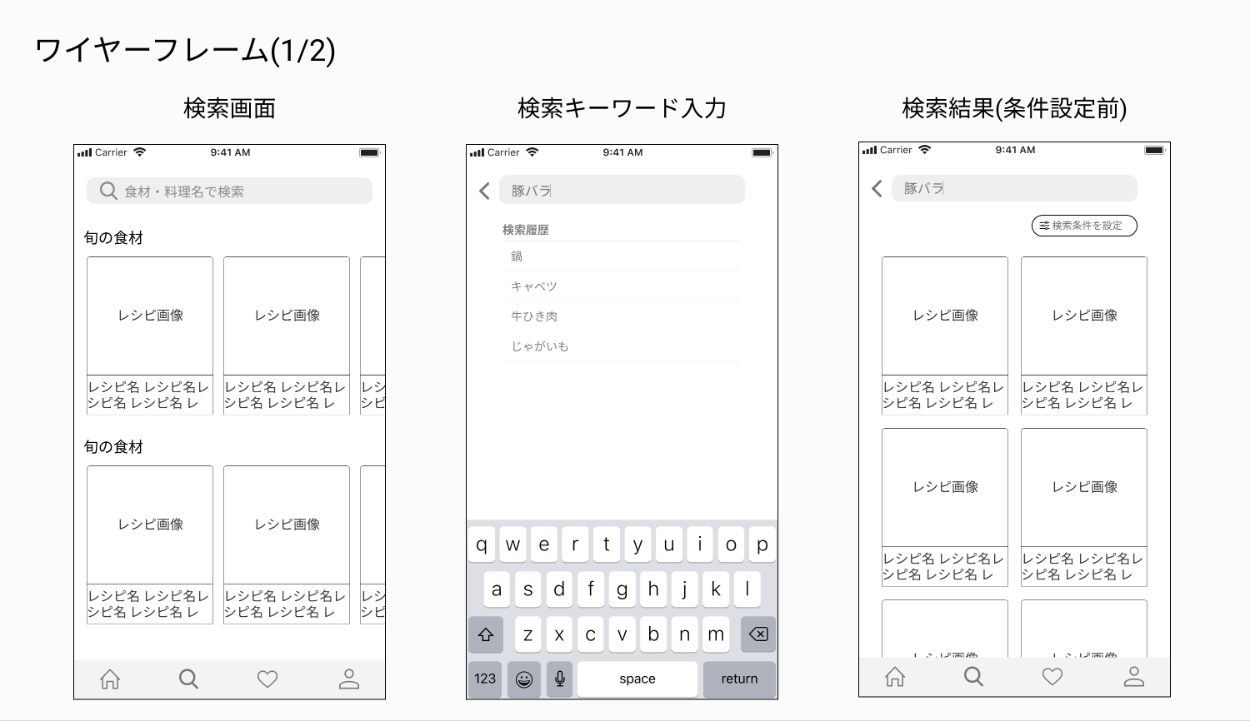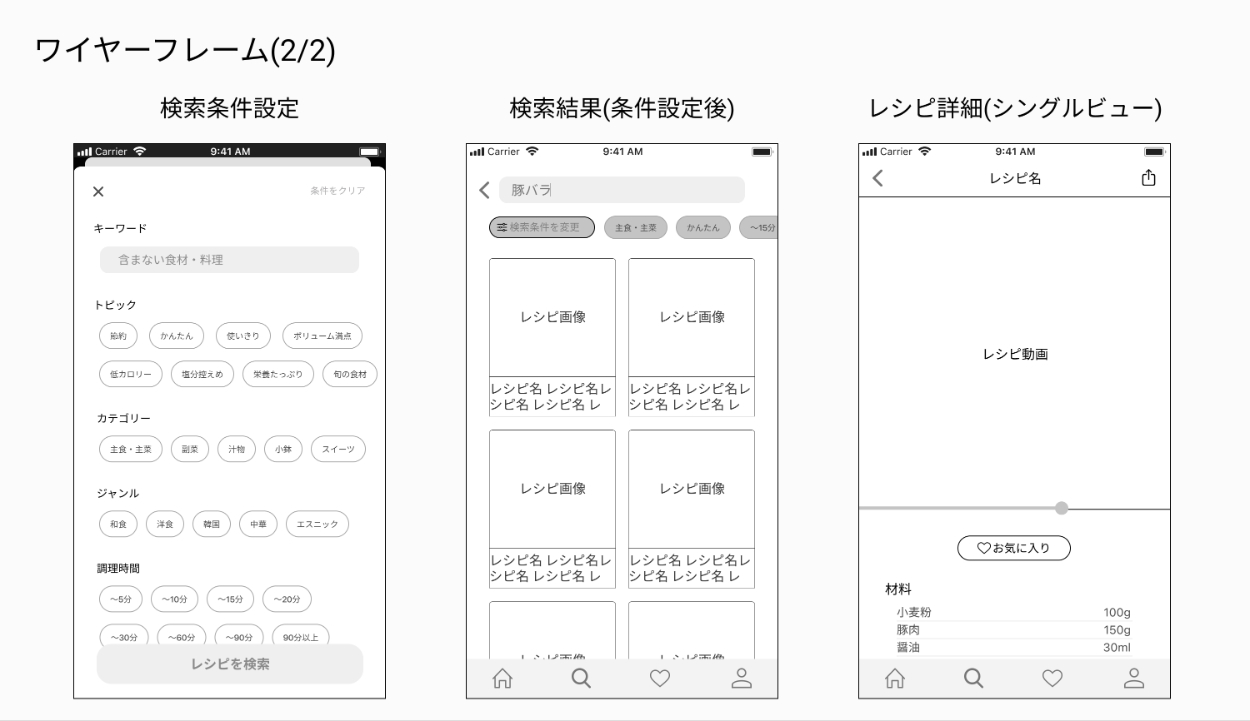 【UI/プロトタイプ】料理レシピアプリ 検索画面