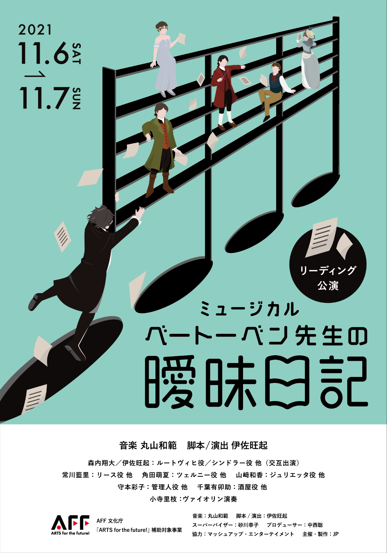制作物:ベートーベンを一生をコミカルに描いたミュージカルの宣伝チラシ 担当:チラシデザイン、イラスト、ロゴデザイン