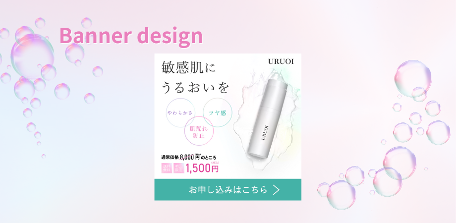 商品のボトルに注目してもらうために、大きく配置できるように配置しました。