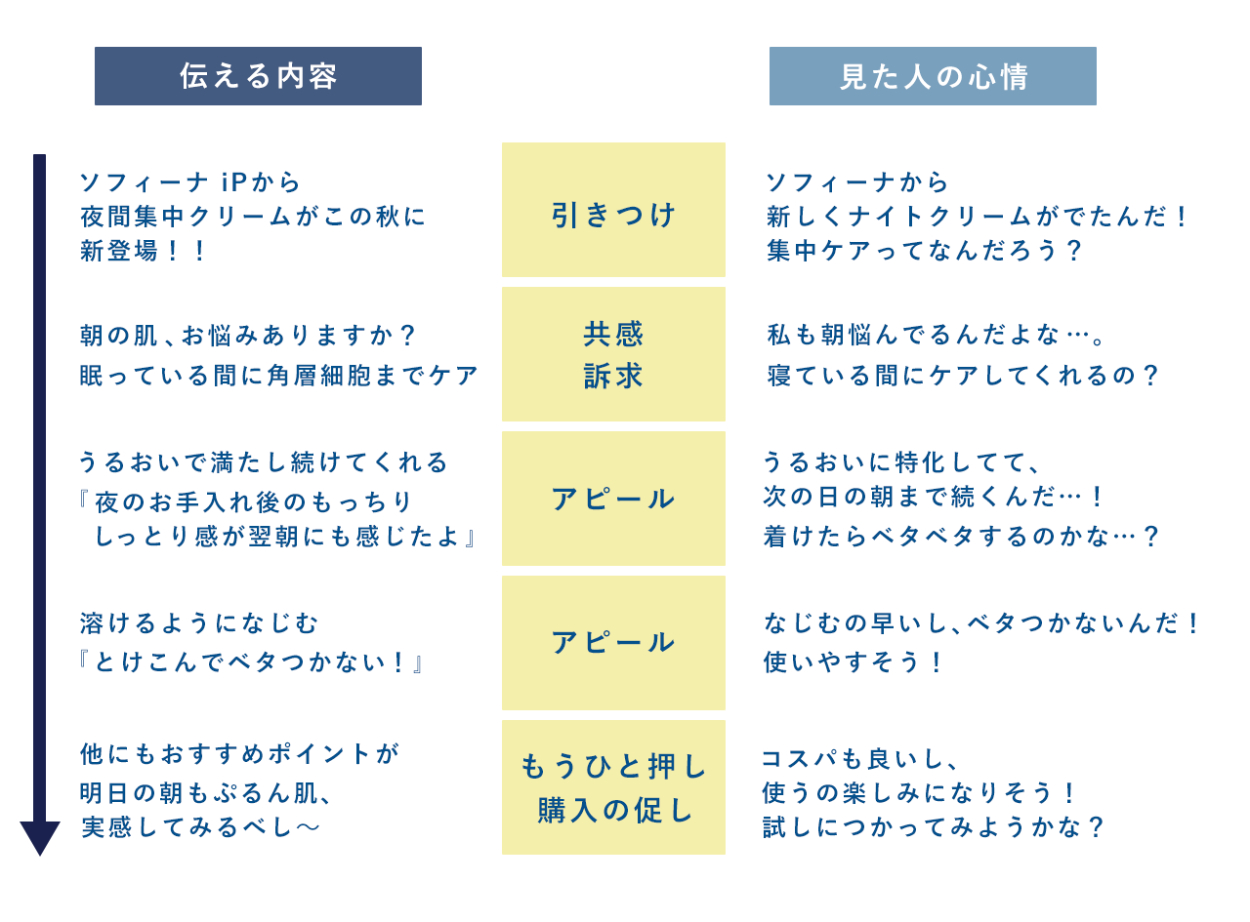 - 「ぷるん、フワ〜、スルスル〜」などの擬音語を意識し、よりイメージしやすくなる文章を意識すること