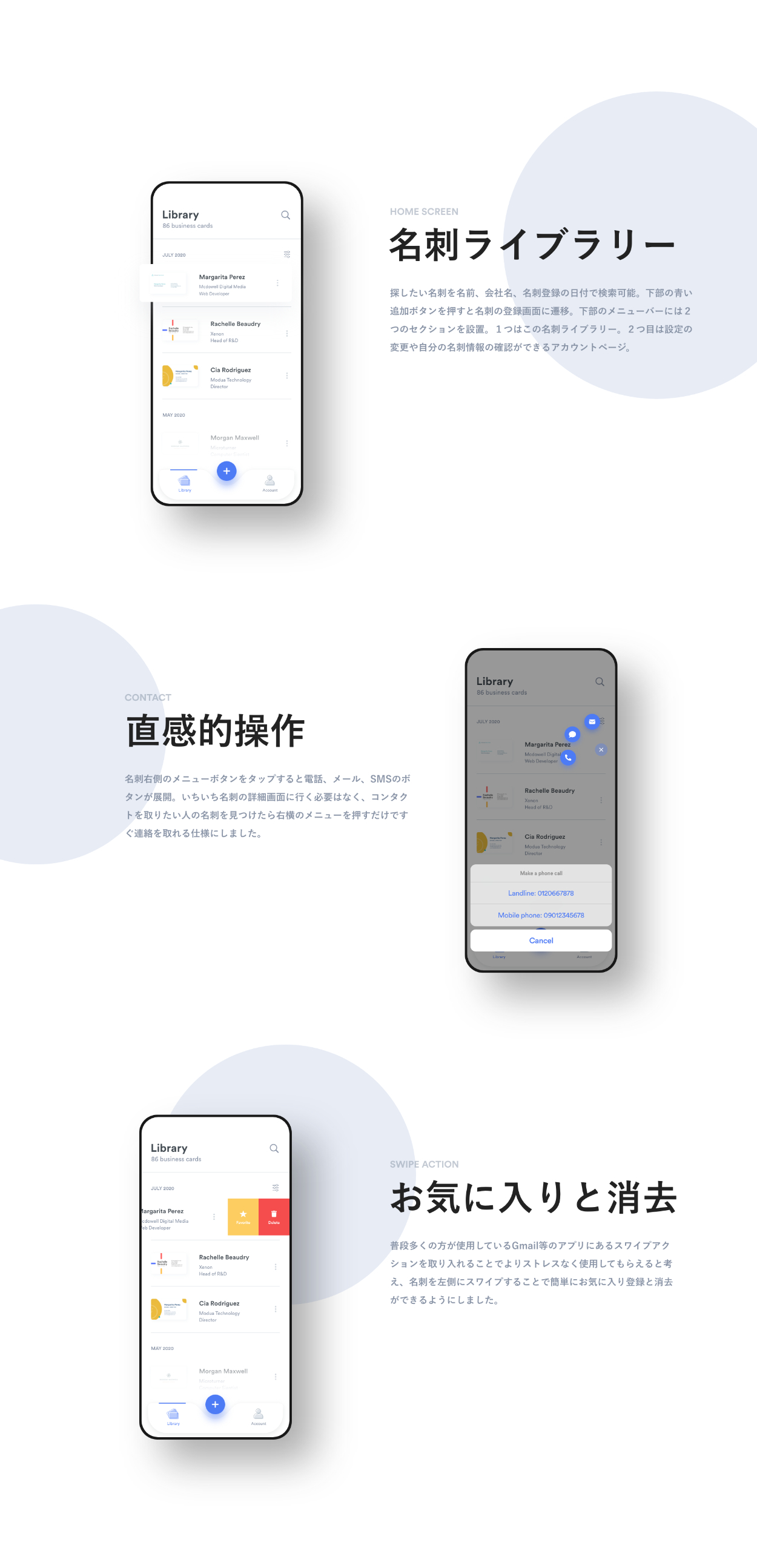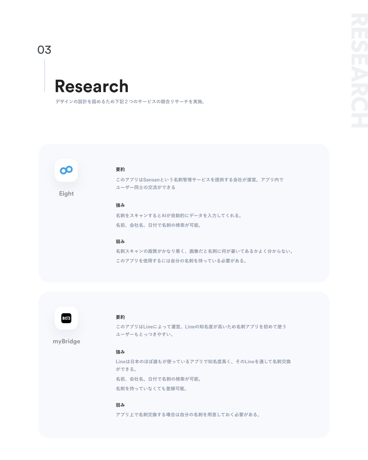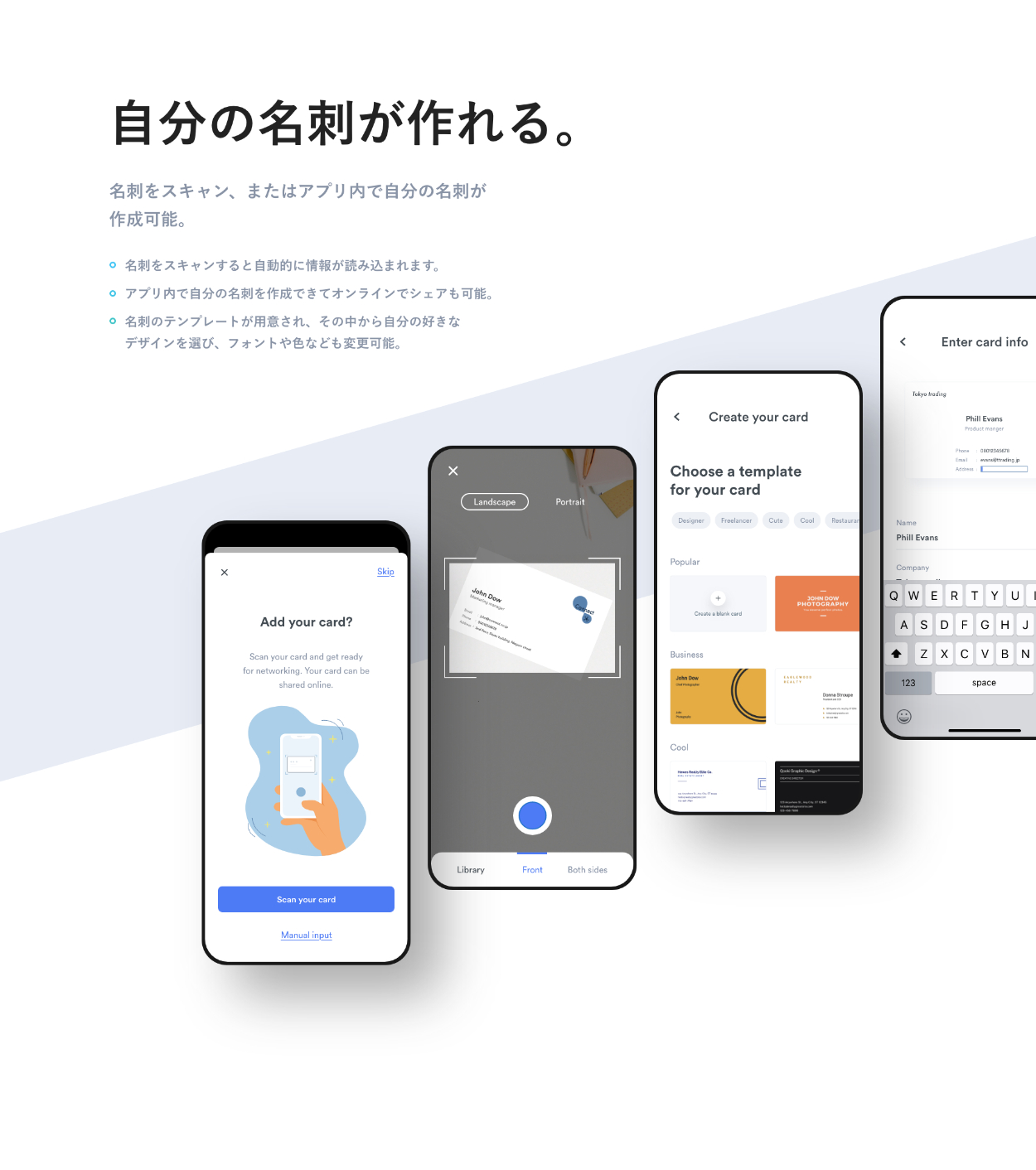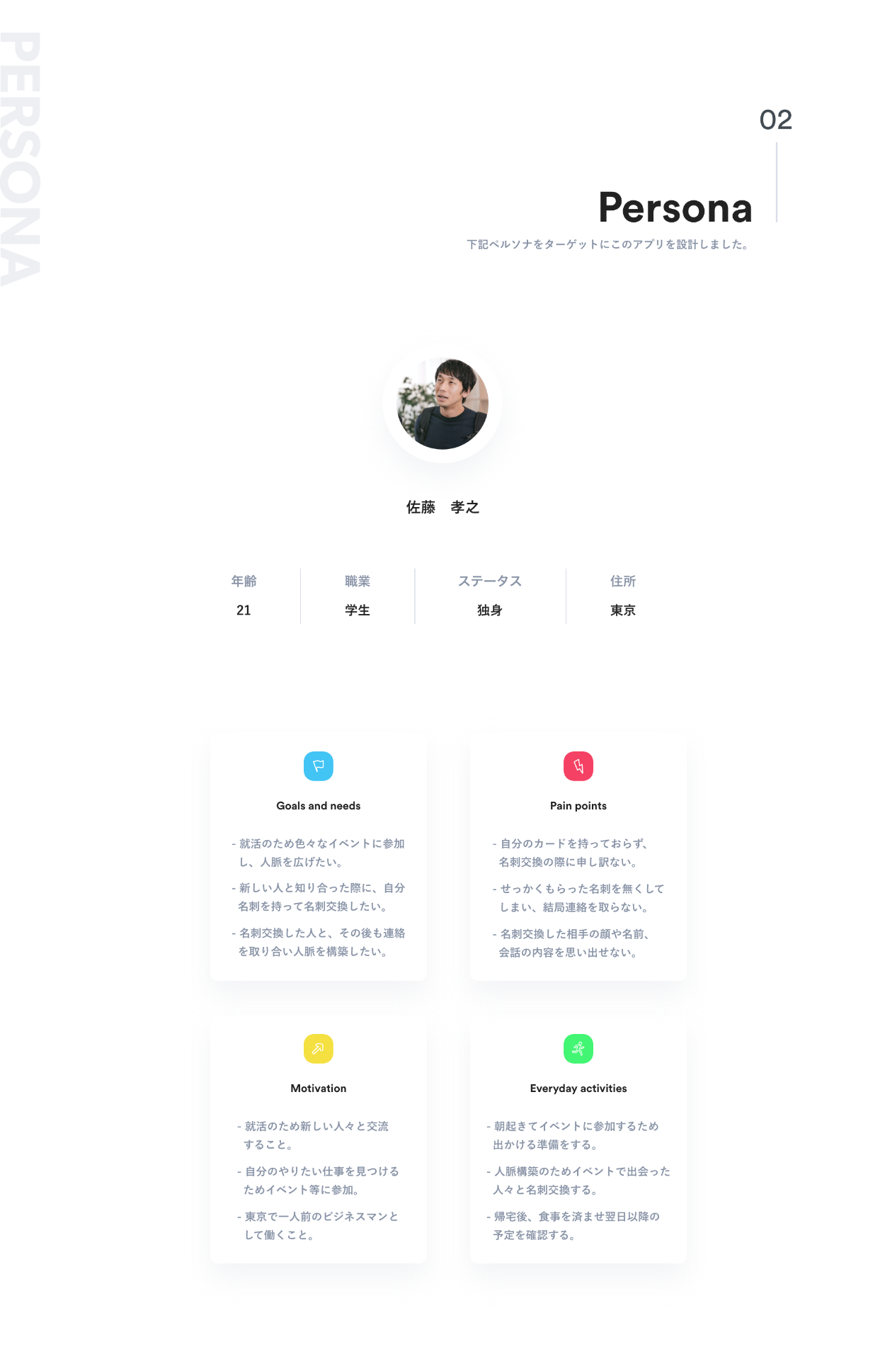 Connect 名刺管理アプリ UI/UXデザイン Yusuke 会社員 OVERVIEW ココダの一環として、名刺管理のUI/UXデザインを行いました。 YEAR 2020 プロトタイプはこちらからどうぞ → プロトタイプ