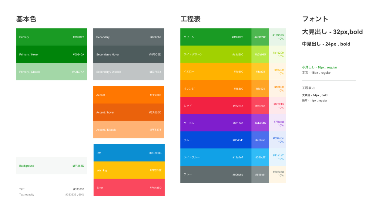 通知・注意・警告色はベーシックな配色で、情報とユーザーの認識に齟齬が無いよう設計しています。