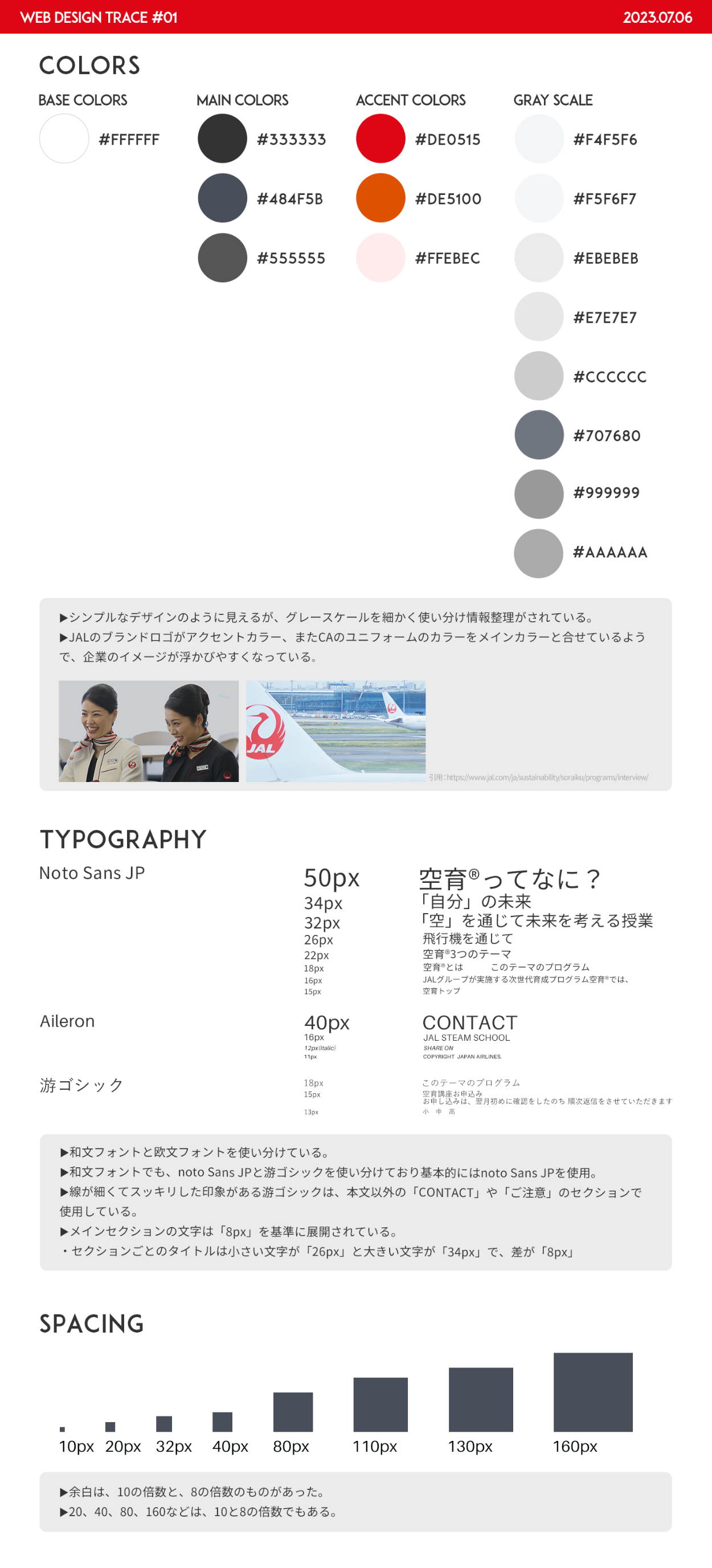 る読みやすいLPになることを学びました。また、グレーを何色も使用していたり、細かいフォントの使い分けや、セクションごとに余白にルールを設けることで、情報の優先度を整理することができ伝わりやすいLPになることがわかりました。今後自分でLPを作成する場合は、事前のワイヤーフレームや、情報設計を周到に行い、ユーザーに最後まで読んでもらえる作品づくりにこだわりたいです。