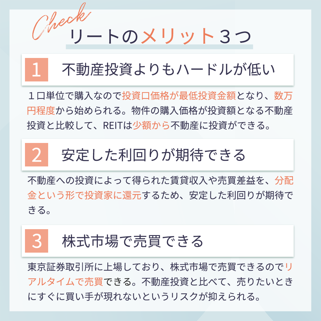 - 情報量が多く、聞きなれない言葉が多いので見る側が情報を整理しやすいように、オレンジと緑で良い点/悪い点、お金の右への流れ/左への流れ、リート/不動産投資のこ とを色分けしてわかりやすくデザイン。