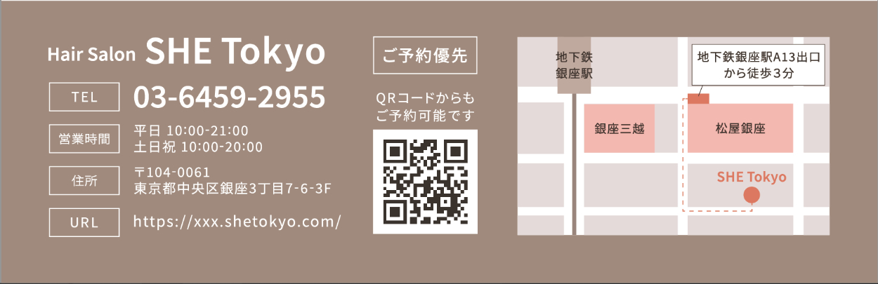 ・配色はペルソナや銀座という立地に合わせて、落ち着いた色味にしつつも、ゴールドを入れて高級感を演出しました。また、オープンする日付が秋であった為、秋を感じさせる配色にしています。