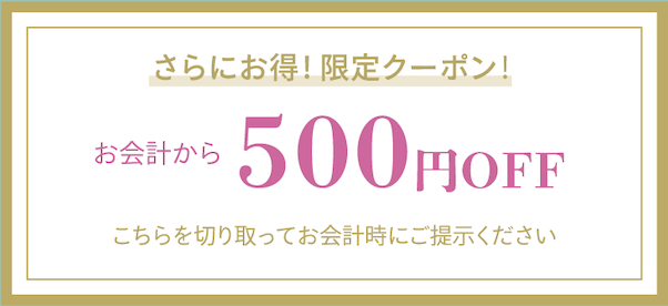 ・30%オフやクーポンなどは、サロンの雰囲気に合わせて落ち着き感を出しつつ、目を引くようなあしらいにしました。