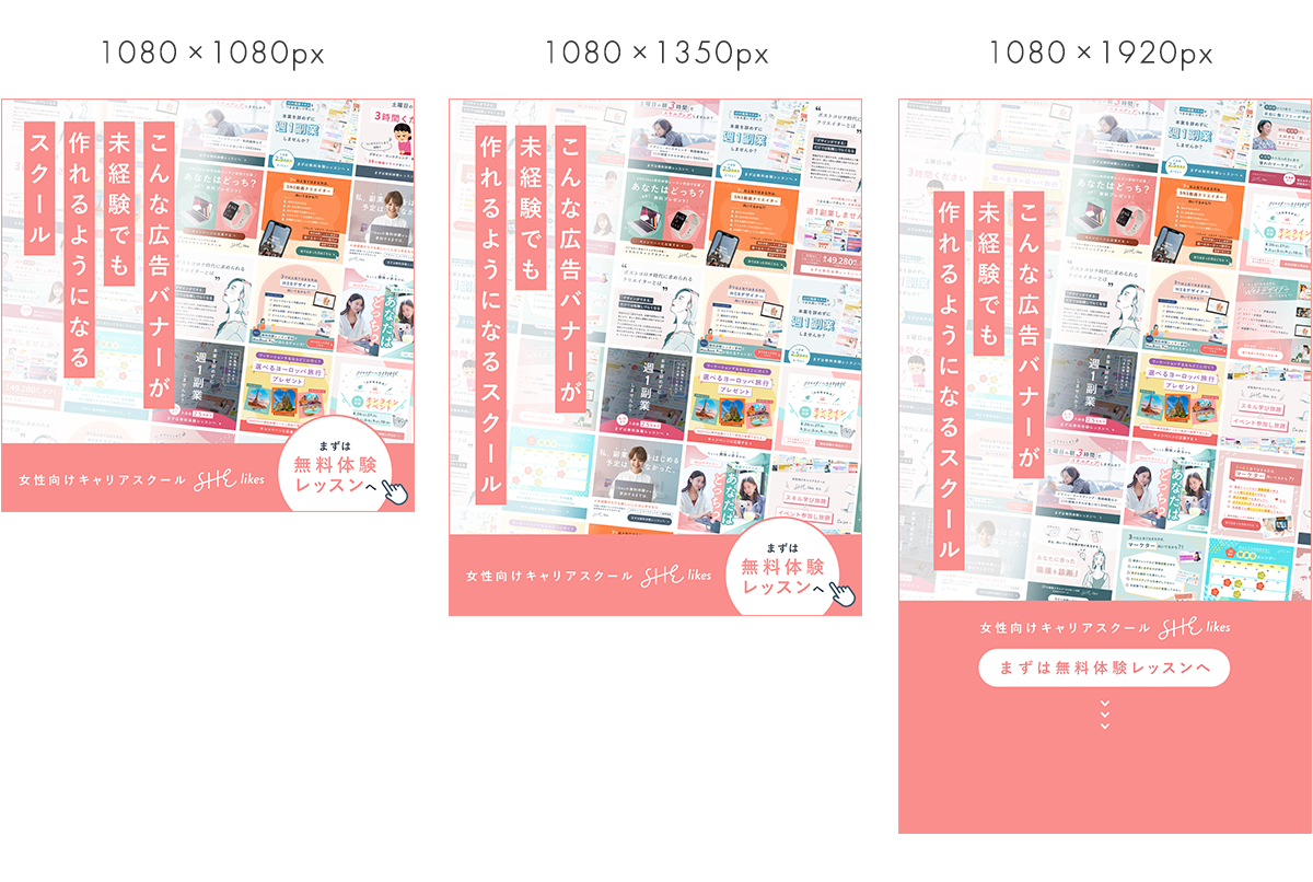 ・背景のバナー内の文字にキャッチコピーが埋もれないよう縦書きで可読性と視認性と向上。