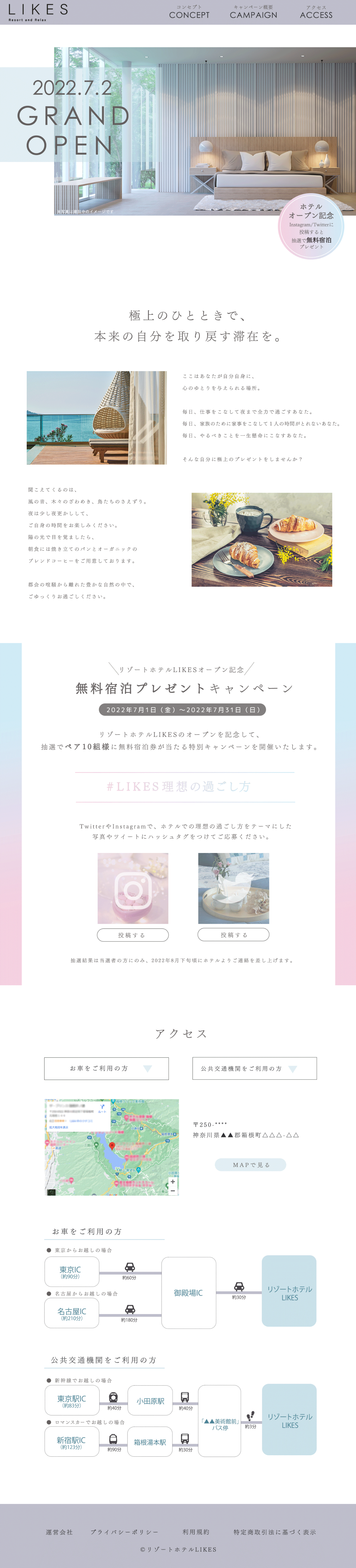 《自主制作》新規オープンリゾートホテルのキャンペーン訴求サイト