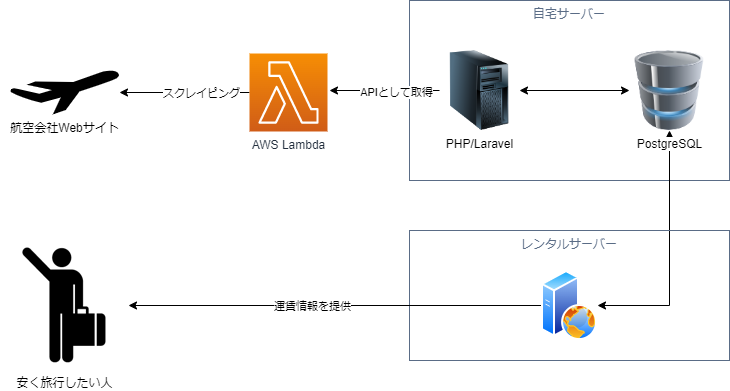 といった弱点・要望があったことから、予約サイトに掲載されている価格をスクレイピングし、最安値順で表示する仕組みを作りました。