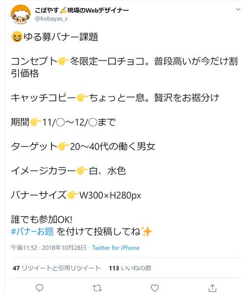 Twitterでバナーお題というものを見つけて取り組みました。