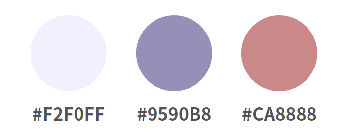 ベースカラー(#F2F0FF):メインカラー(#9590B8 ):アクセントカラー(#CA8888)