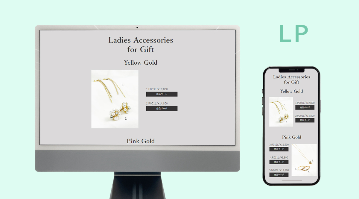 男性から女性へ送るプレゼント特集のLPということで、シンプルで見やすいページになるよう意識しました。このLPは、グループの中で中途退校された方の代わりに急遽自分が制作することになり、制作時間に不安があった為、デザインカンプの段階からコーディングをしやすいように考えて制作しました。