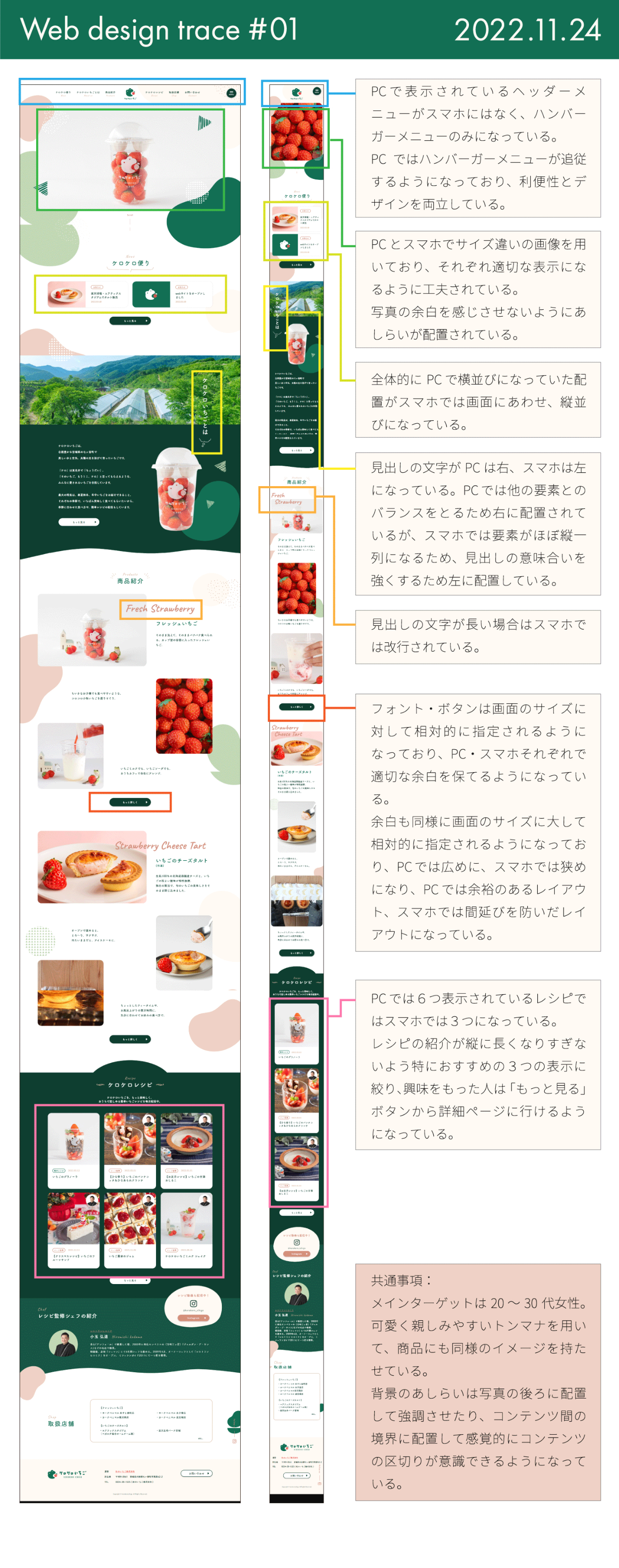 - PCとスマホの画面を比較することで、それぞれレイアウトで意識する部分が異なることを学びました。
