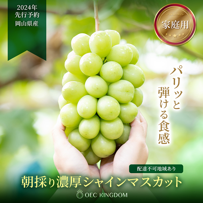 シャインマスカットの商品画像 yoko フリーランスWebデザイナー ECサイト(ふるさと納税)で使用されるシャインマスカットの商品画像を制作ターゲット:30代〜50代 男性・女性使用ツール:Photoshop・Illustrator