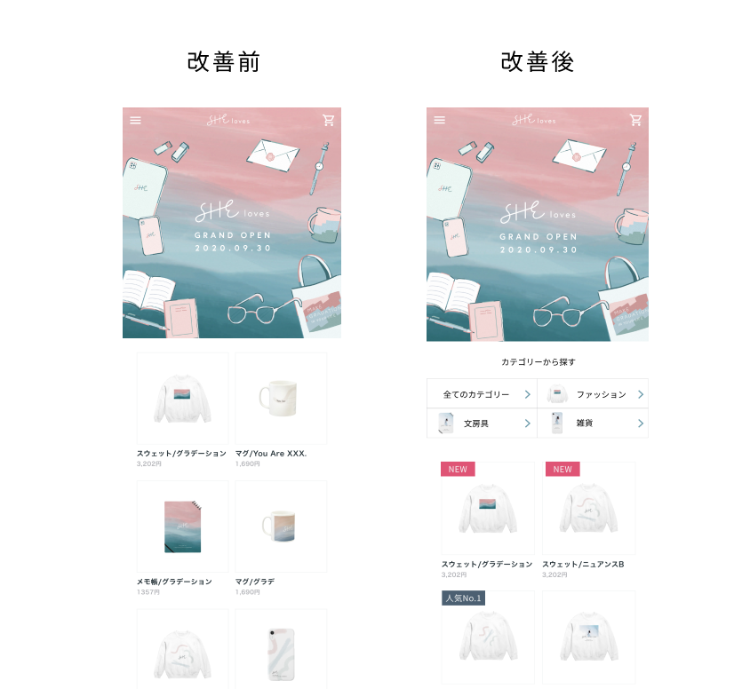 SHElikesのMULTI CREATOR PROJECTの課題で制作したECサイトのUI/UX改善案です。ペーパープロトタイプの作成、Figmaを使用したデザイン提案書の作成に取り組みました。 【制作期間:1週間】