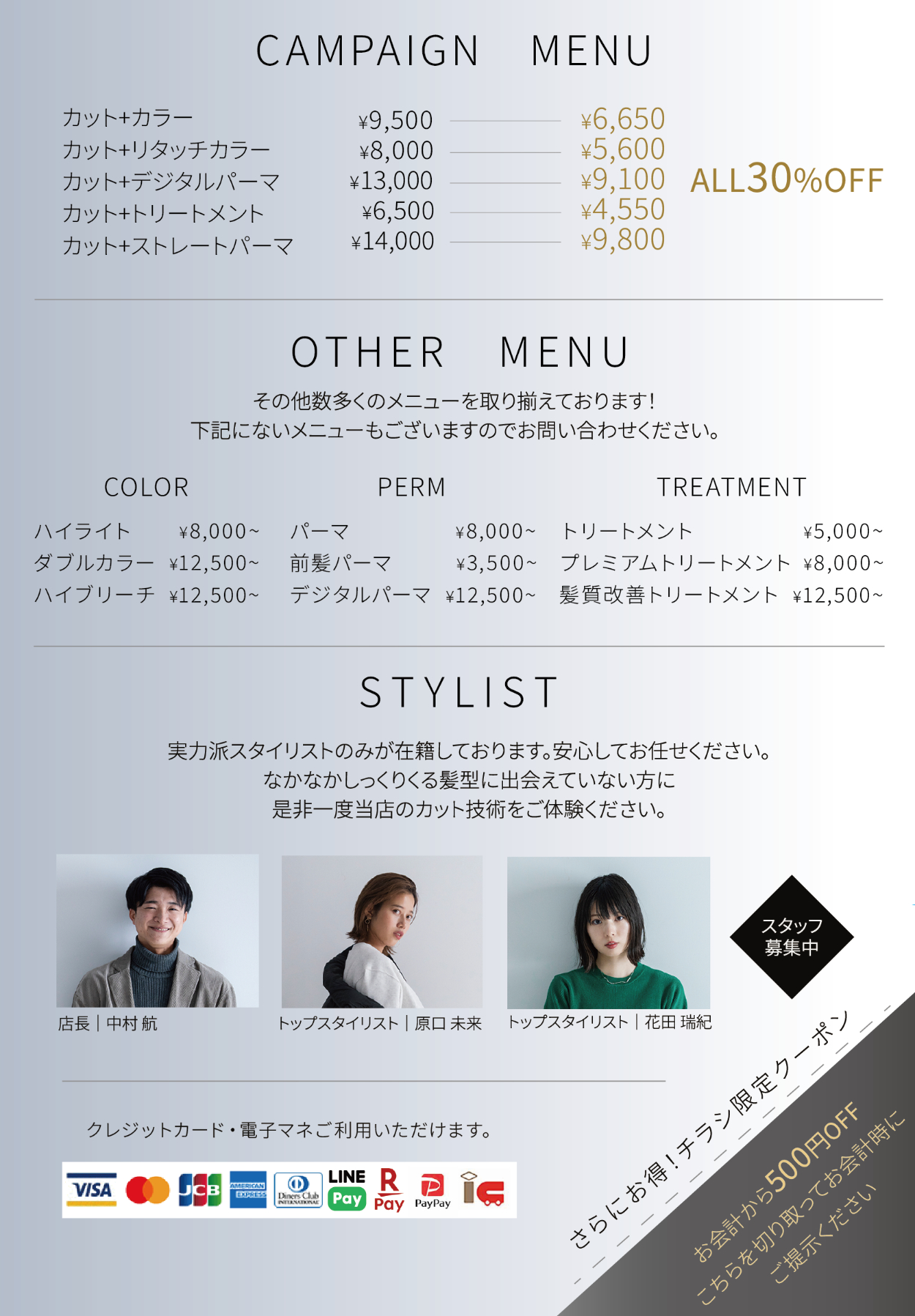 -ターゲット:少し高めの料金設定であっても確かな腕のスタイリストに担当してもらいたい、ヘアスタイルにこだわりのある方。