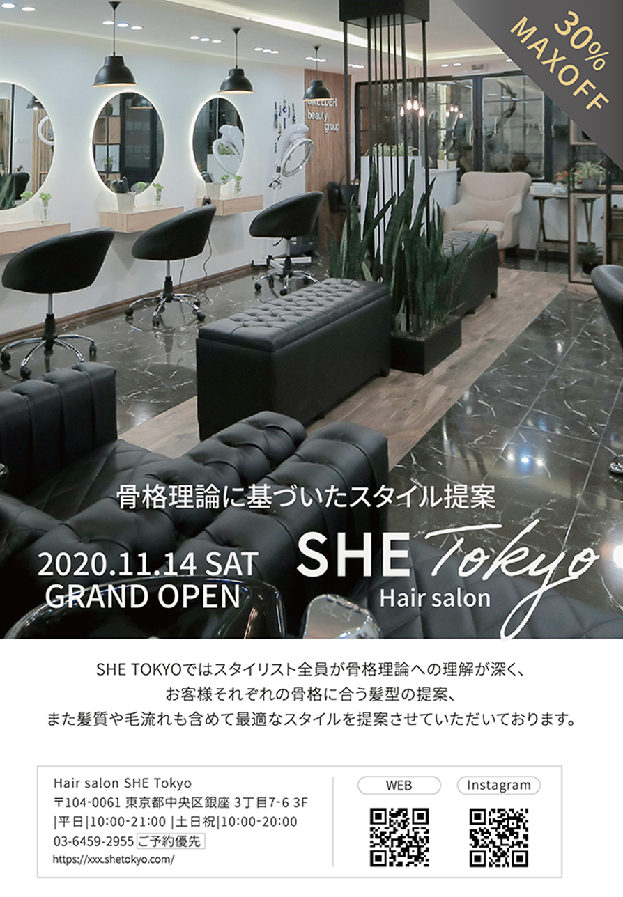 銀座にできる美容室のフライヤーなので、美容室の綺麗さ明るさや清潔感、銀座の印象の高級感やエレガントやおしゃれなイメージ、でも派手ではなく落ち着いていてひとつひとつが洗練されているような雰囲気を表現しました。