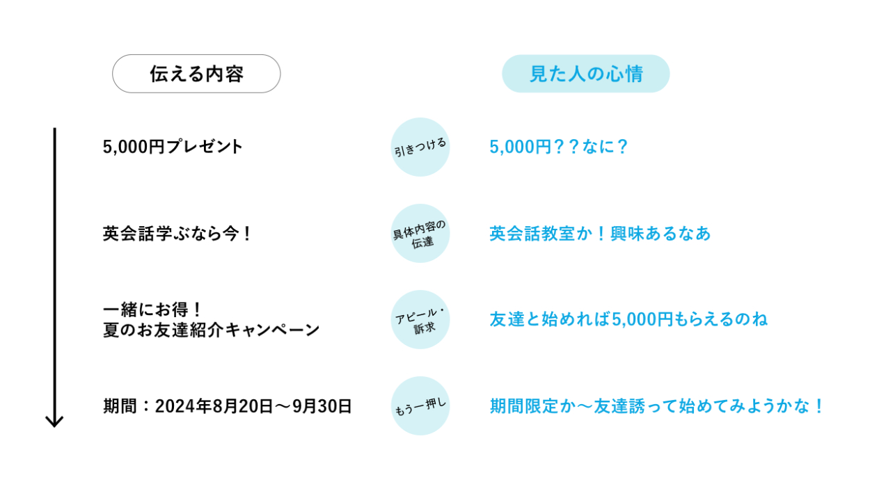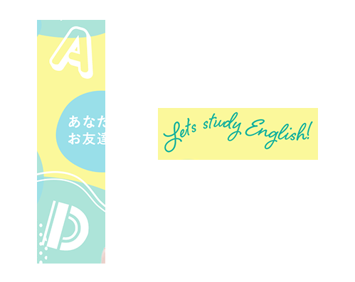 ・英会話教室をイメージできるように、アルファベットを散らしたり、装飾として英語のフレーズを入れました。