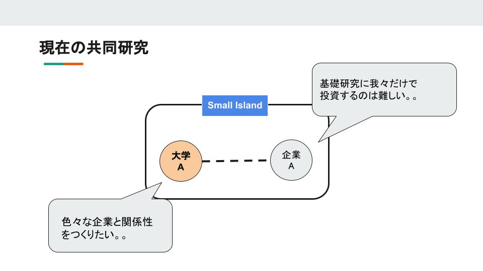 そこで、基礎研究のようなスモールアイランド型の研究を加速するためには新しい仕組みを作る必要があると考えました。