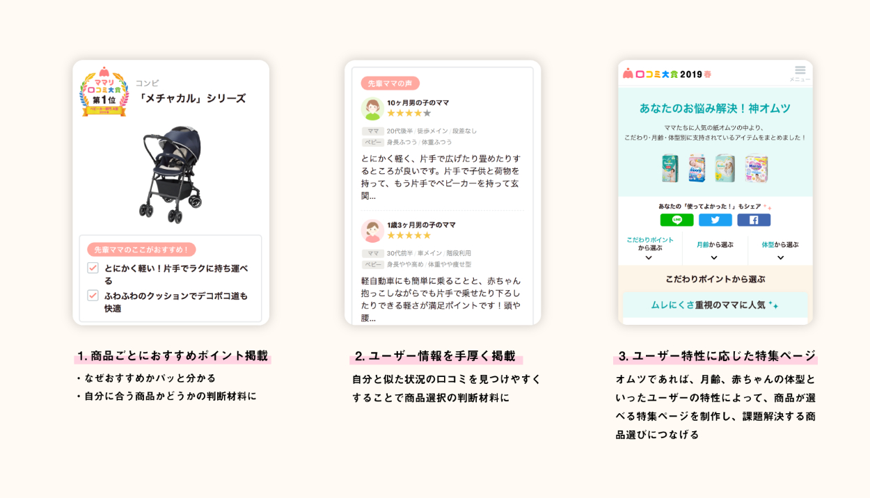 ひとくちにベビーカー、哺乳びんといっても、種類はさまざまです。ママリ口コミ大賞では、それぞれの家族の悩みや状況に応じて、ぴったりな商品選びができるような情報提供を目指しました。