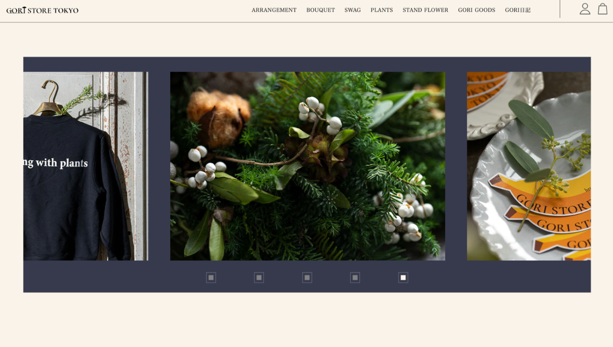 GORI STORE TOKYO WEB制作 chima UIデザイナー OVERVIEW 老舗フラワーショップのWEBサイトリニューアルに伴いデザイン YEAR 2023 https://goristore.tokyoDesign / XD旧「はこねフローリスト」から「GORI STORE」リニューアルに伴い、WEBサイトデザインをさせていただきました。都会的な印象ながら、ノスタルジーも感じるような暖かみのあるデザインを目指しました。 WEBSITE