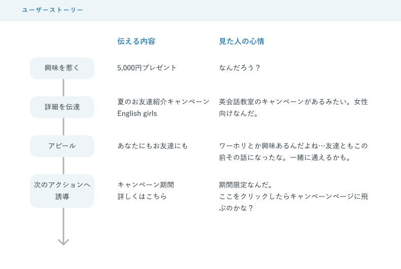 ユーザーストーリーを考え情報設計を行うことで自然とレイアウトが決まってくるように感じました。バナーの目的は「遷移してもらうこと」であり、流し見されるタイムラインの中で目を止めてもらうにはアピールポイントを整理し優先度をつけて配置することが重要だと学びました。