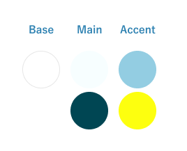 「ビジネスの場で活用するというよりも趣味で習う、ライトなスクール」なのでポップで楽しげ、さらに夏らしい雰囲気にするべく水色と黄色を選びました。
