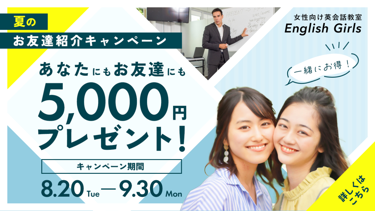 英会話教室にて、来月20日から期間限定でお友達紹介キャンペーンを実施予定。