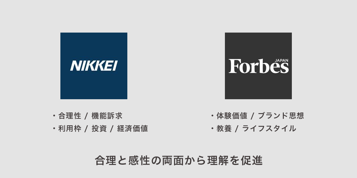 記事タイアップによる価値の深掘り設計。日経電子版およびForbesにて記事タイアップを実施。媒体特性に応じて訴求内容を設計し、Visa Infiniteの価値を多面的に伝達しました。