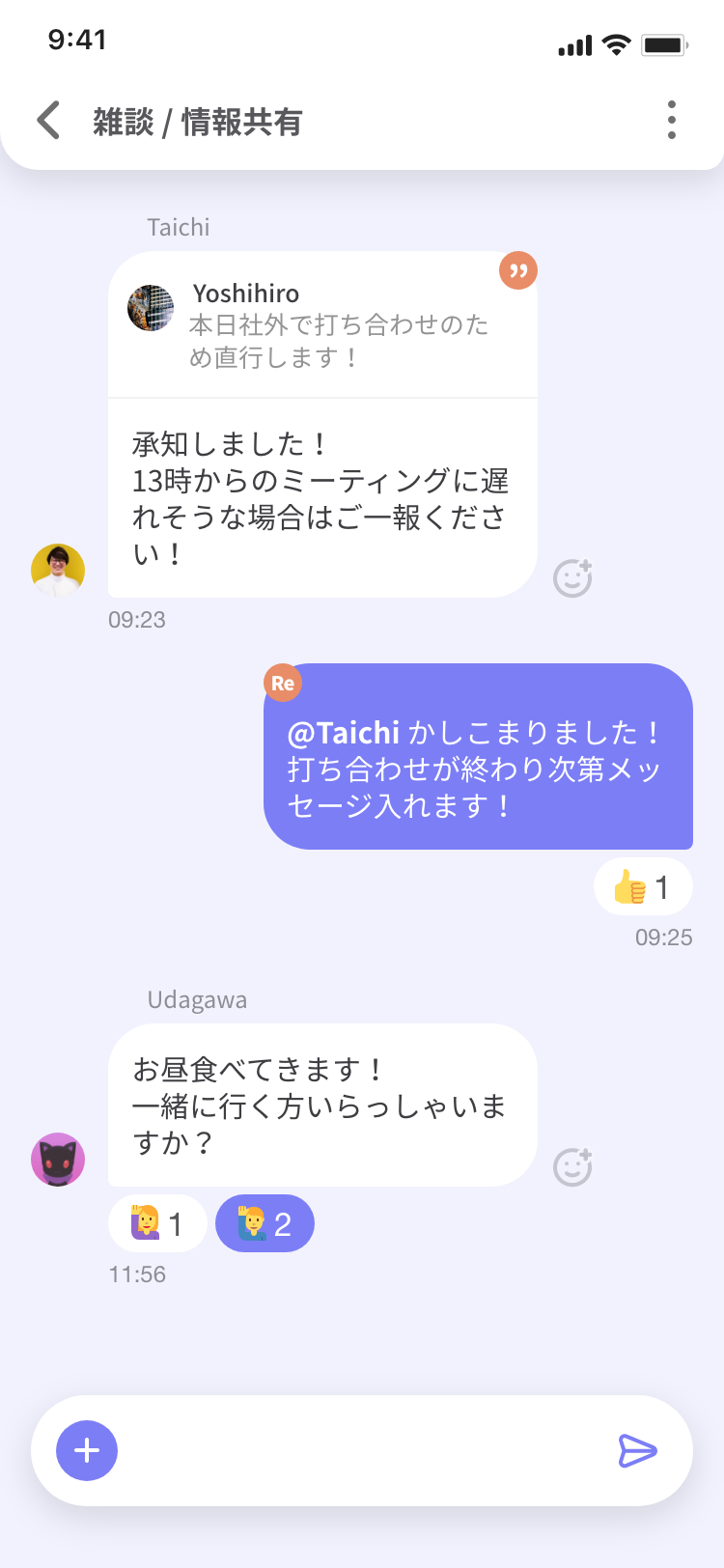 引用や返信のアイコンをつけることで、メッセージのカテゴライズをした。