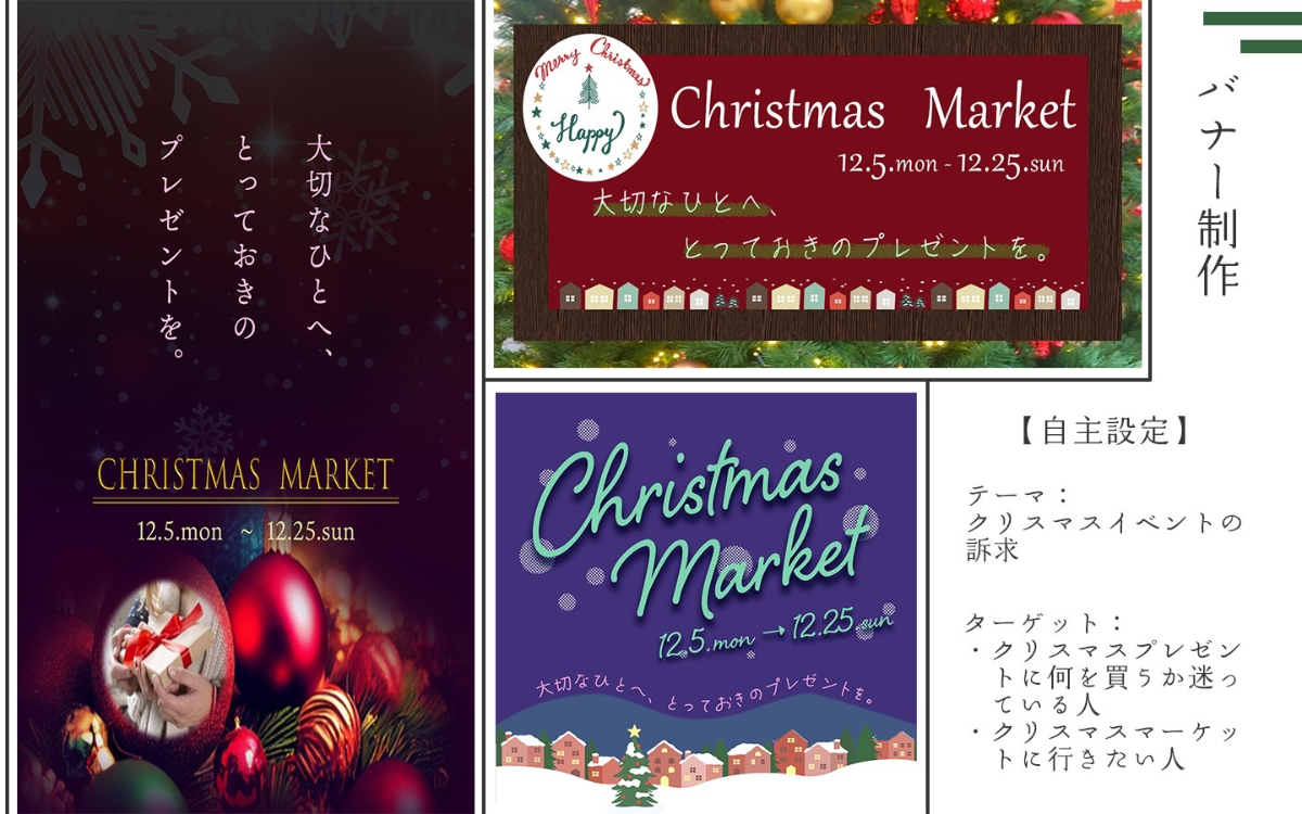 3パターン作成 【自主設定】 〈ターゲット〉 ・クリスマスプレゼントに何を買うか迷ってる人 ・クリスマスマーケットに行こうと思ってる人