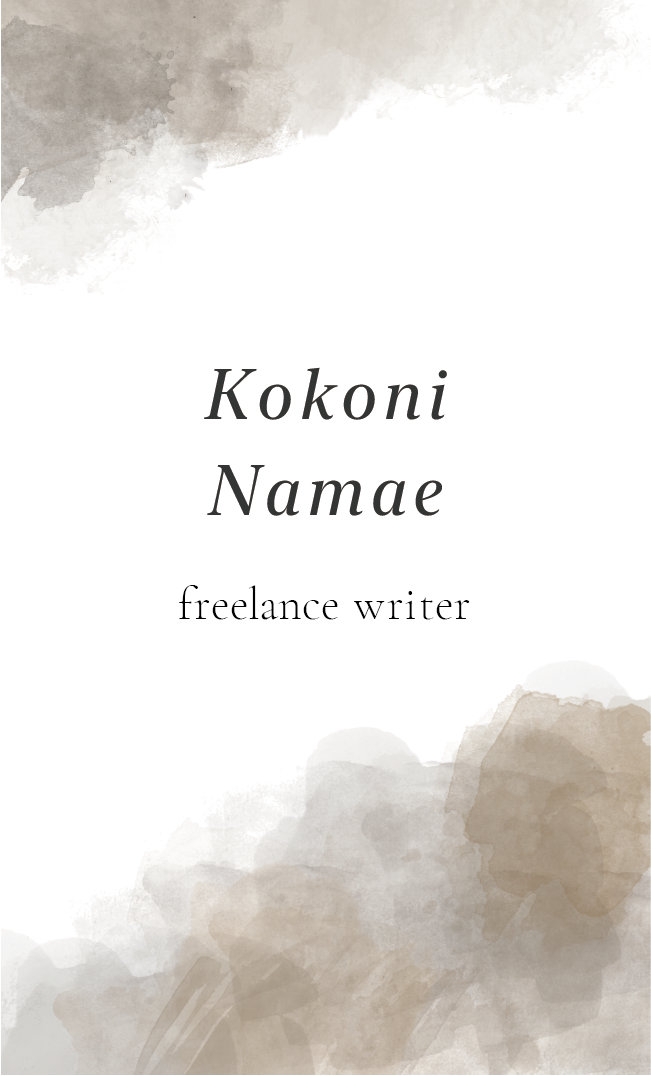 名刺/自主制作 ななか designer/marketer OVERVIEW ライター名刺 YEAR 2021 🌿作成した名刺🌿作成時間約2時間半🌿ポイント・水彩=淡いイメージがあるが、深いブラウンやグレーを絶妙に混ぜることで、奥深さを演出。・滑らかなセリフ体を使用して全体のバランスを取った。